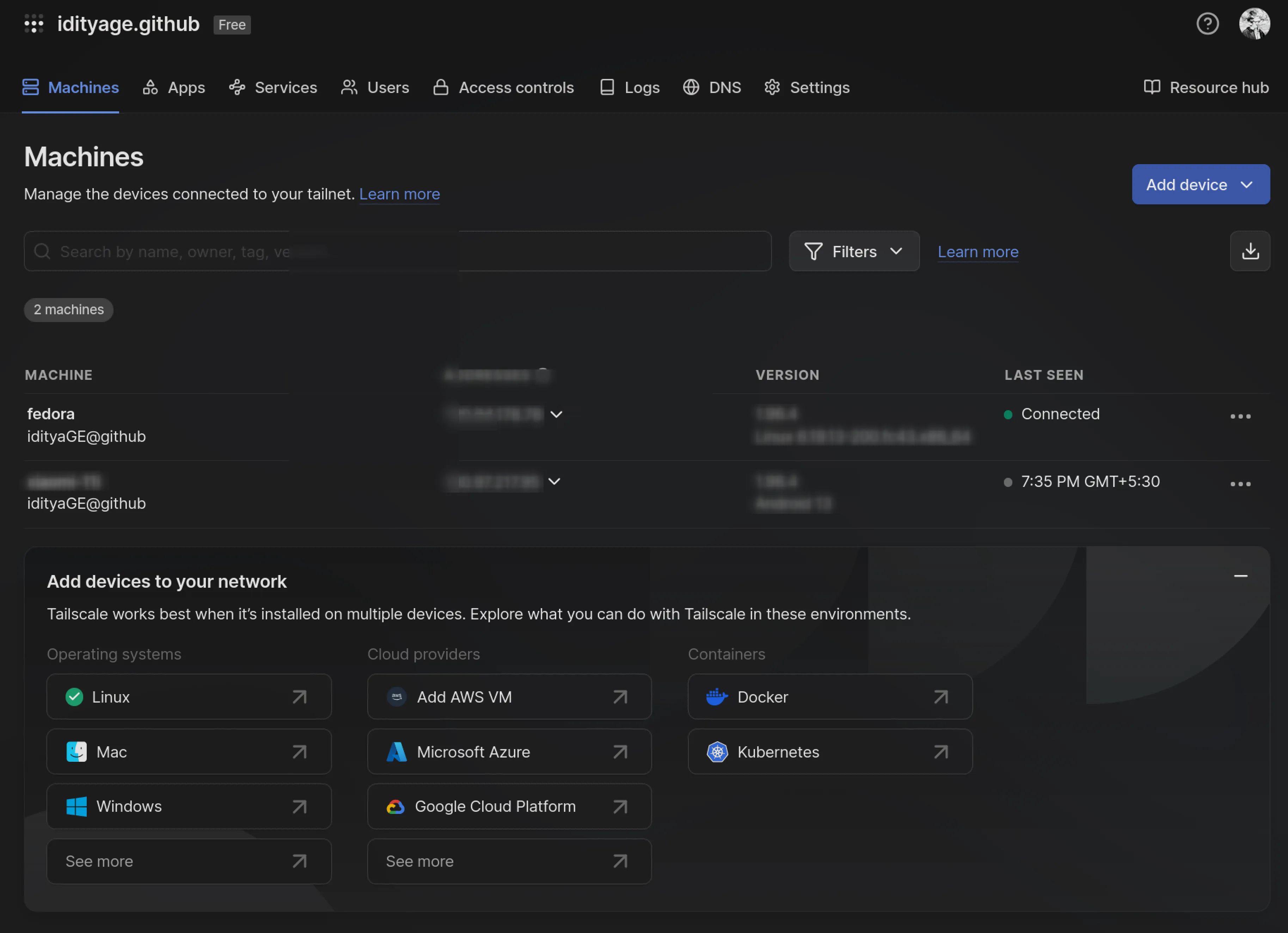 Go to the Tailscale admin console. You should see both devices listed as connected.