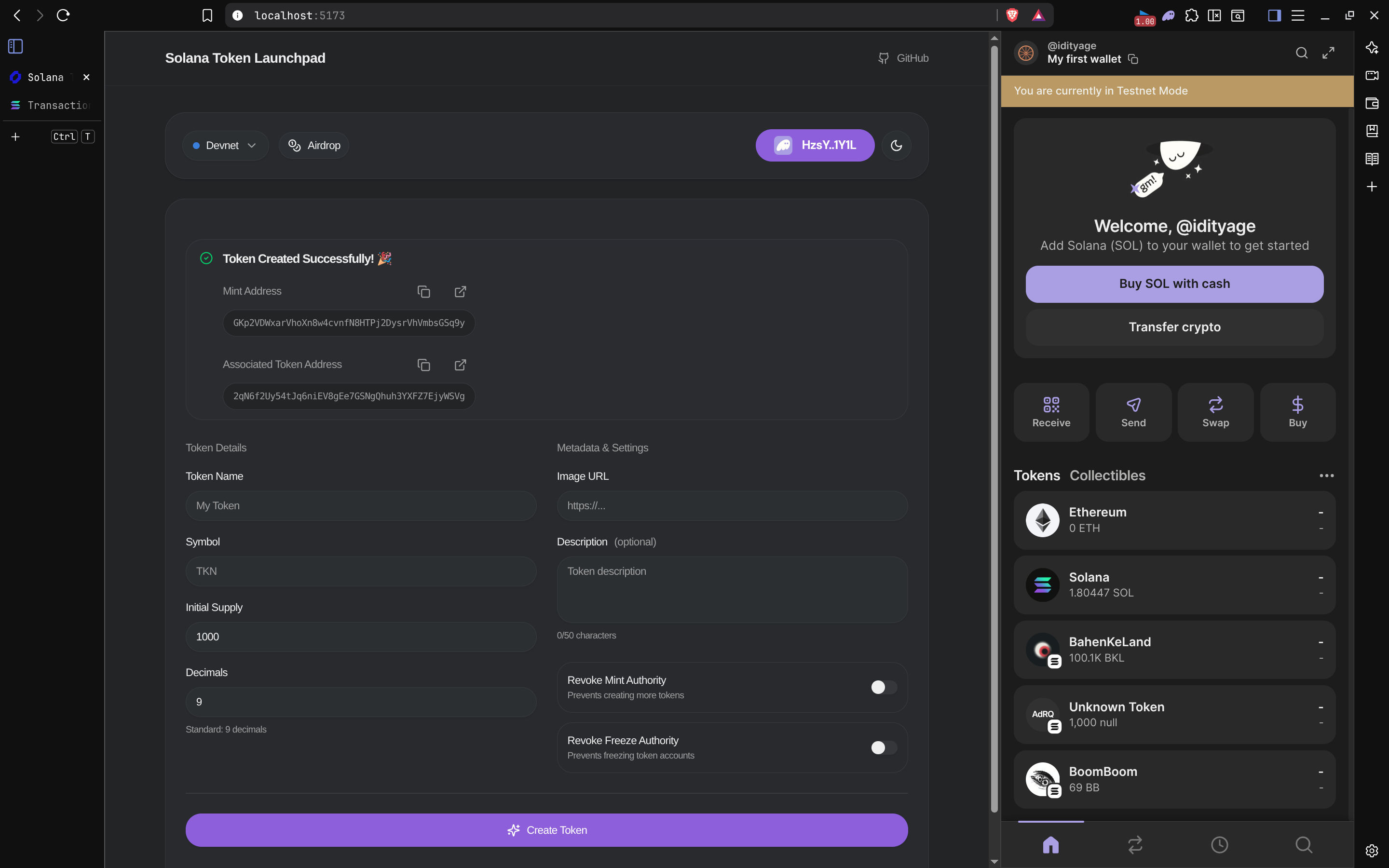A powerful web application that enables users to launch their own tokens on the Solana blockchain with complete metadata support.